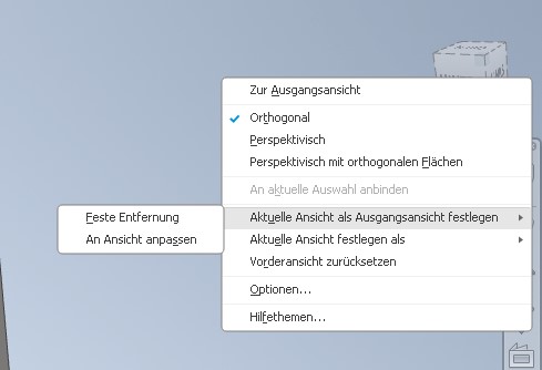 Außerdem wäre es praktisch, wenn ich nach einem Rechtsklick auf den Kubus ähnlich wie in Inventor eine benutzerdefinierte Ansicht schnell als Ausgangsansicht festlegen könnte. Ich weiß, dass dies über die Kamera im Navigator möglich ist, aber manchmal wäre diese Funktion intuitiver.