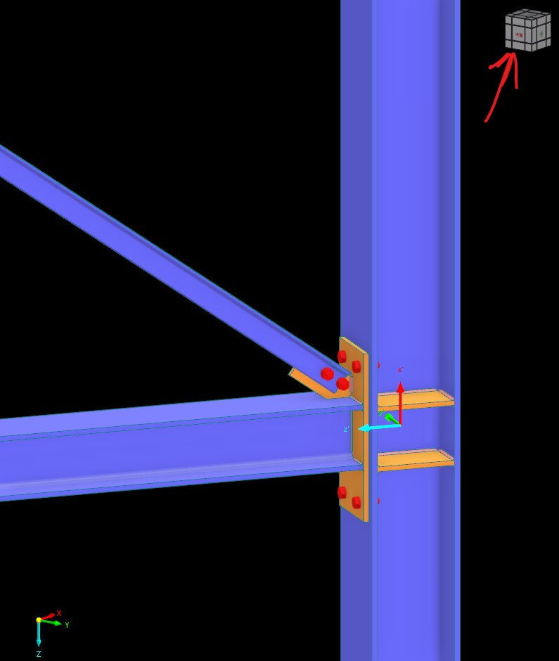 ich würde mich freuen, wenn sich der Kubus oben in der Ecke im Fenster „Stahlanschluss bearbeiten” ebenfalls einstellt, wenn ich ein anderes Koordinatensystem aktiviere.