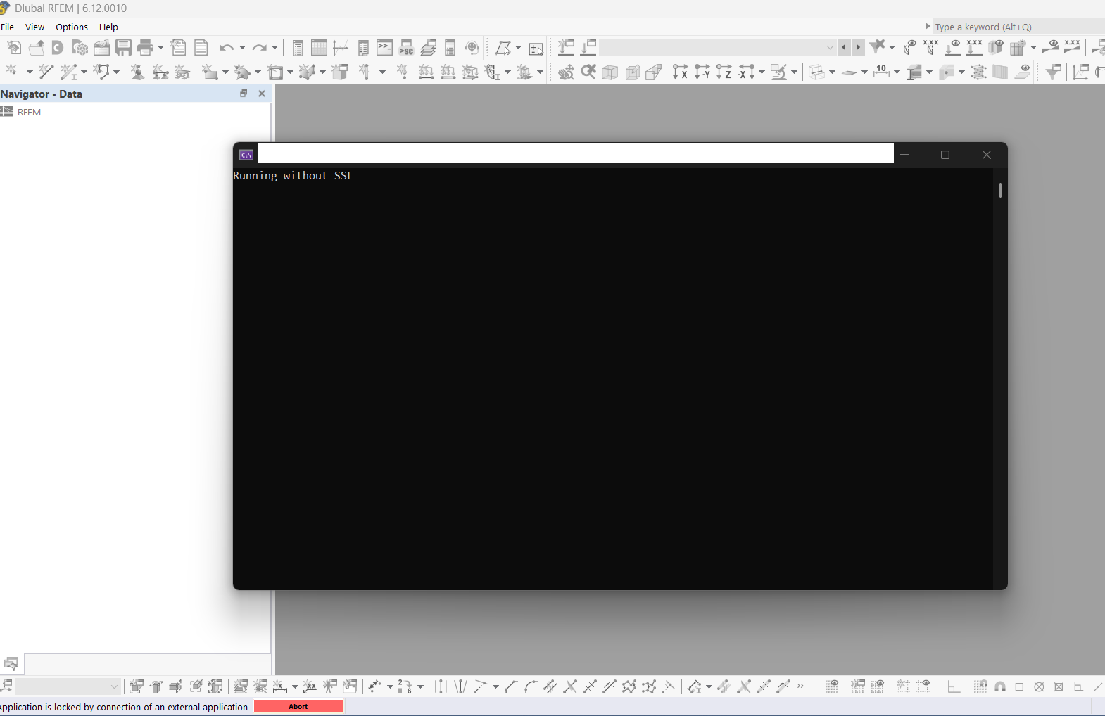 Using RFEMv6.12.0010 and Dlubal API v6.2.10, was working fine during the past days, but suddenly since 2-3 hours ago it started crashing all the time. The application still locks RFEM, and console gives usual message 'Running without SSL'.