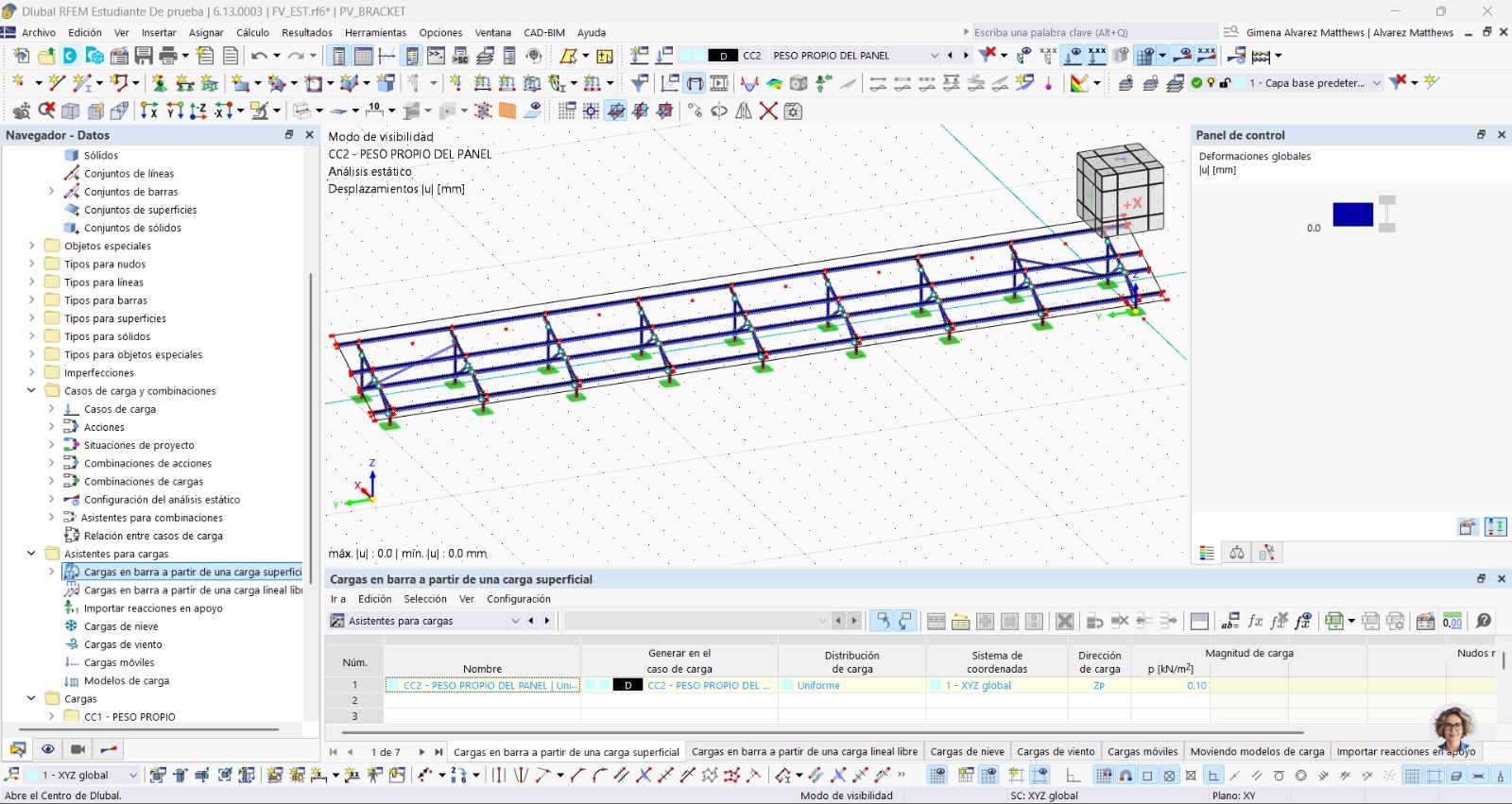 Additionally, we observe in your screenshot that the defined load appears in blue. This usually indicates that the load is not assigned correctly. In the case of a “member load from a surface load,” it is necessary to assign a surface or a load model as a reference. If this surface is not defined, the load cannot be transferred to the members and, therefore, no effect will be shown in the model.