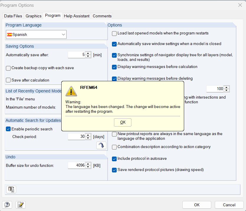 I’m trying to change the Program Language in RFEM5. When I change it in Program Options I get the normal message saying that I have to restart the program. But after restart it, the language is not changed.