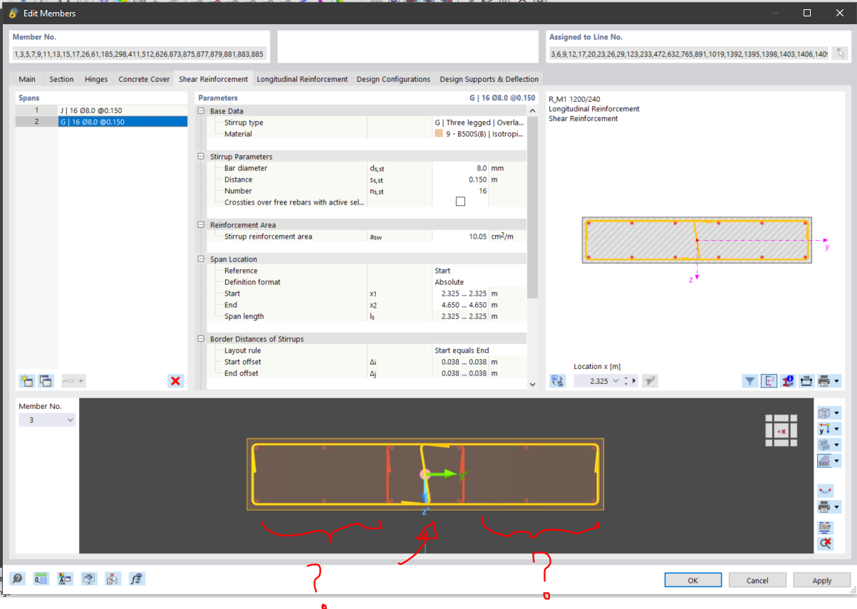 For a concrete column (1200x240), I get the error that the transverse distance between the stirrup legs are not enough (first image). I cannot define any denser distribution of stirrup legs using the available options in RFEM: