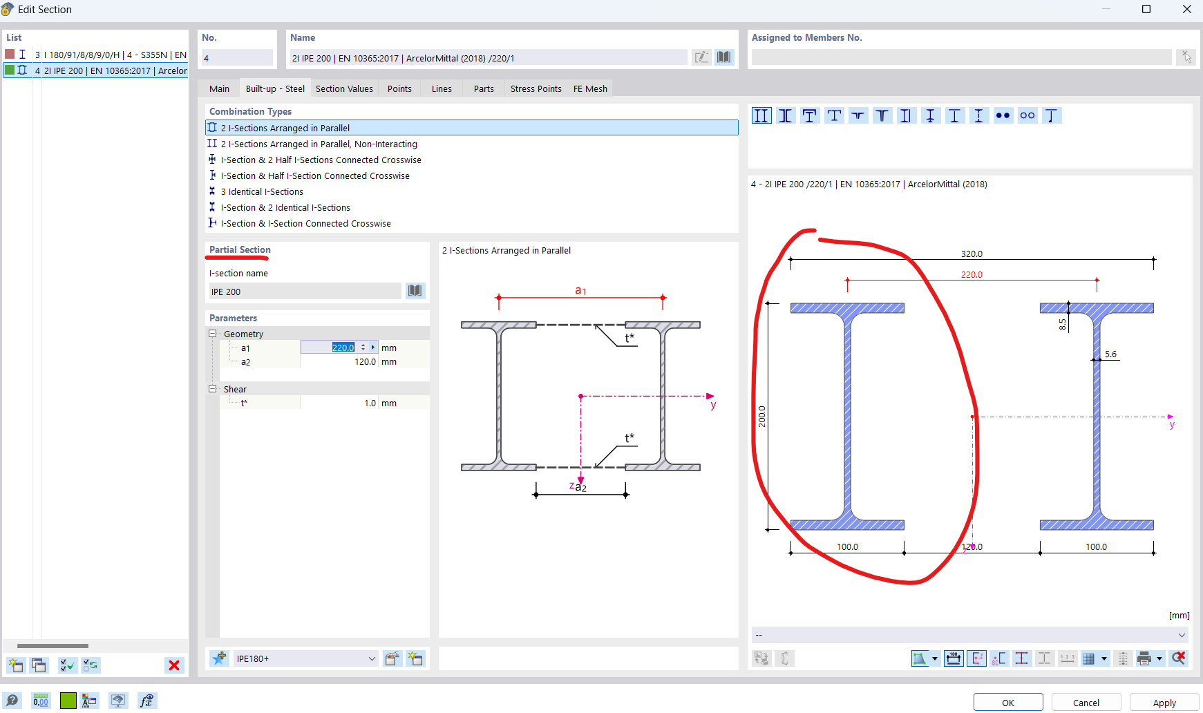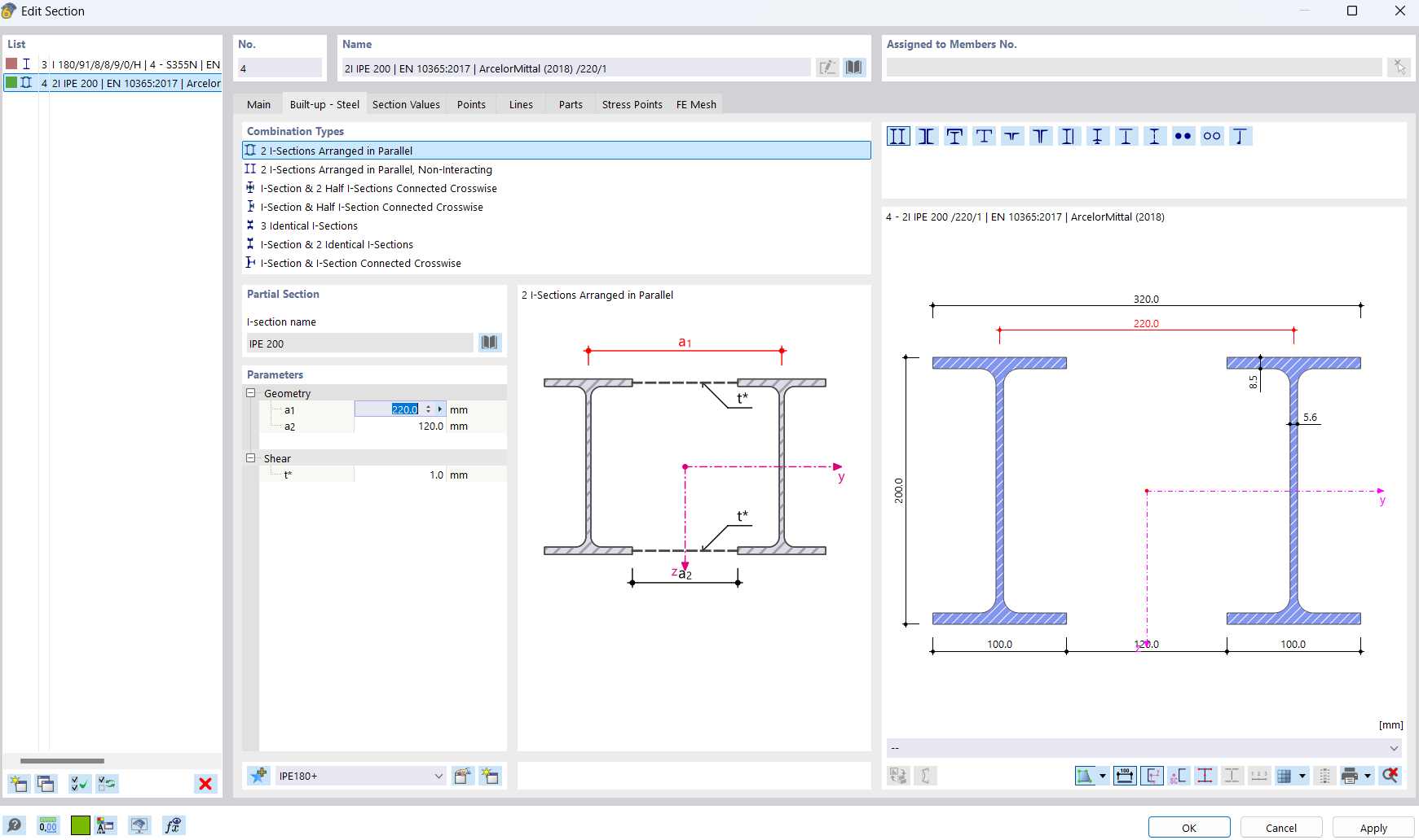 Basically, I need both of the IPEs of the built up cross-section to have 8 mm webs.