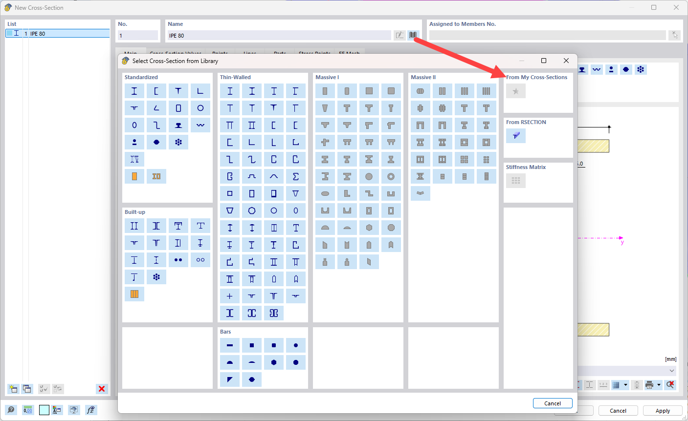Alternatively, you can use a cross-section from our cross-section library and define it as a parametric cross-section: