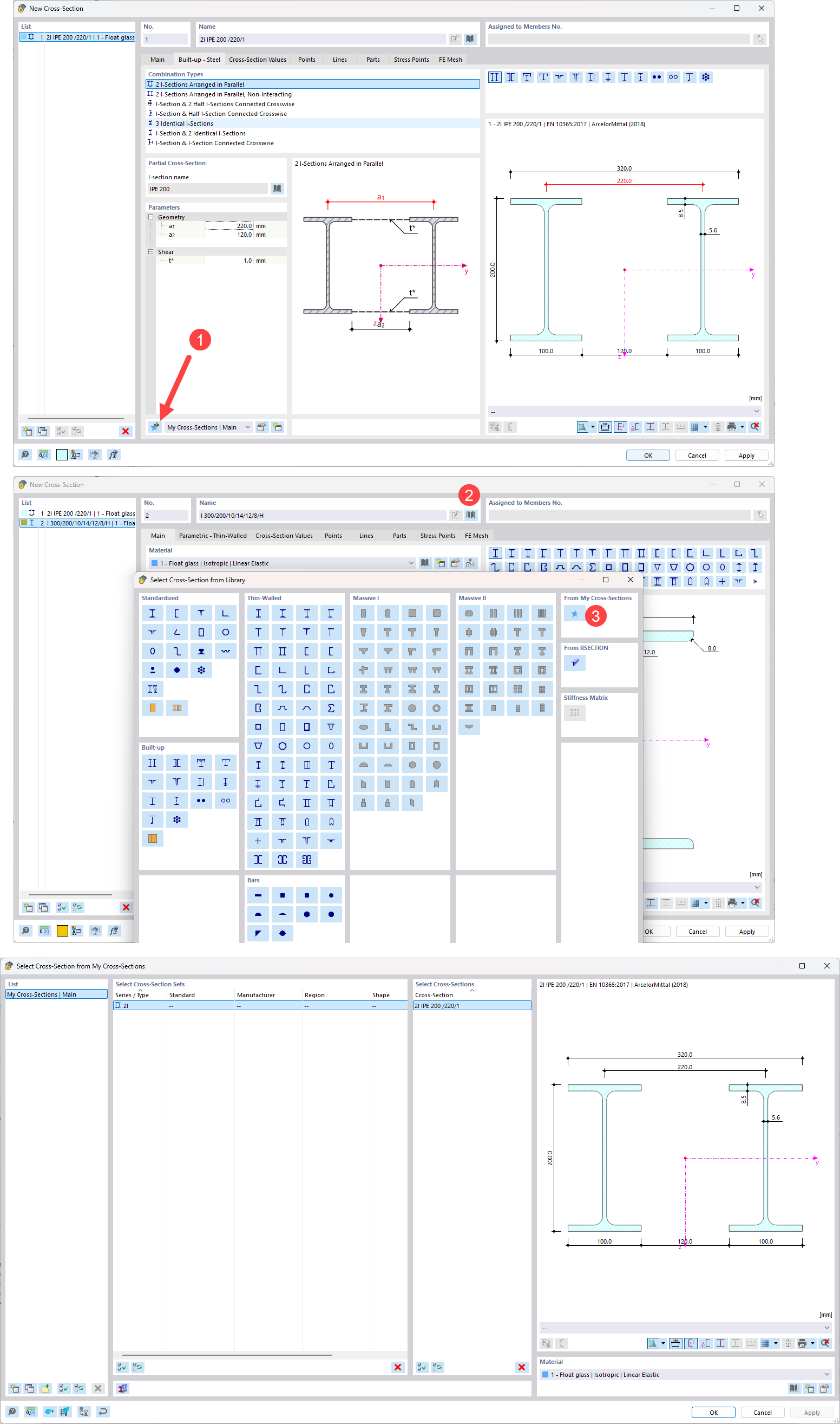 However, I am still having an issue. Say for instance, I need to create an IPE180 with a modified web. I create the section and I save it in my sections with a new name. So far all works. But, if I need to create a built up cross section of two IPEs, I don't see an option to select my custom cross-section