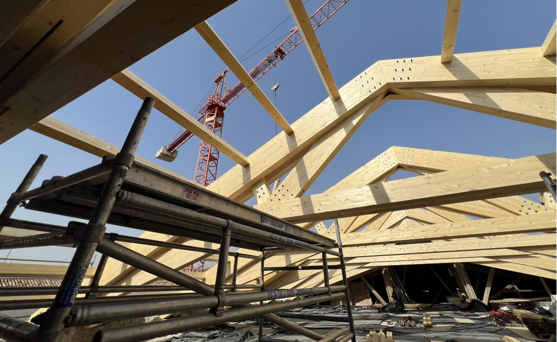 Large timber trusses that form the roof structure of the Episcopal Palace in Palencia. The roof section analyzed in this article, consisting of six large trusses, has a width of 20,5 m without intermediate supports, a length of 19,7 m and a height of 4,62 m.