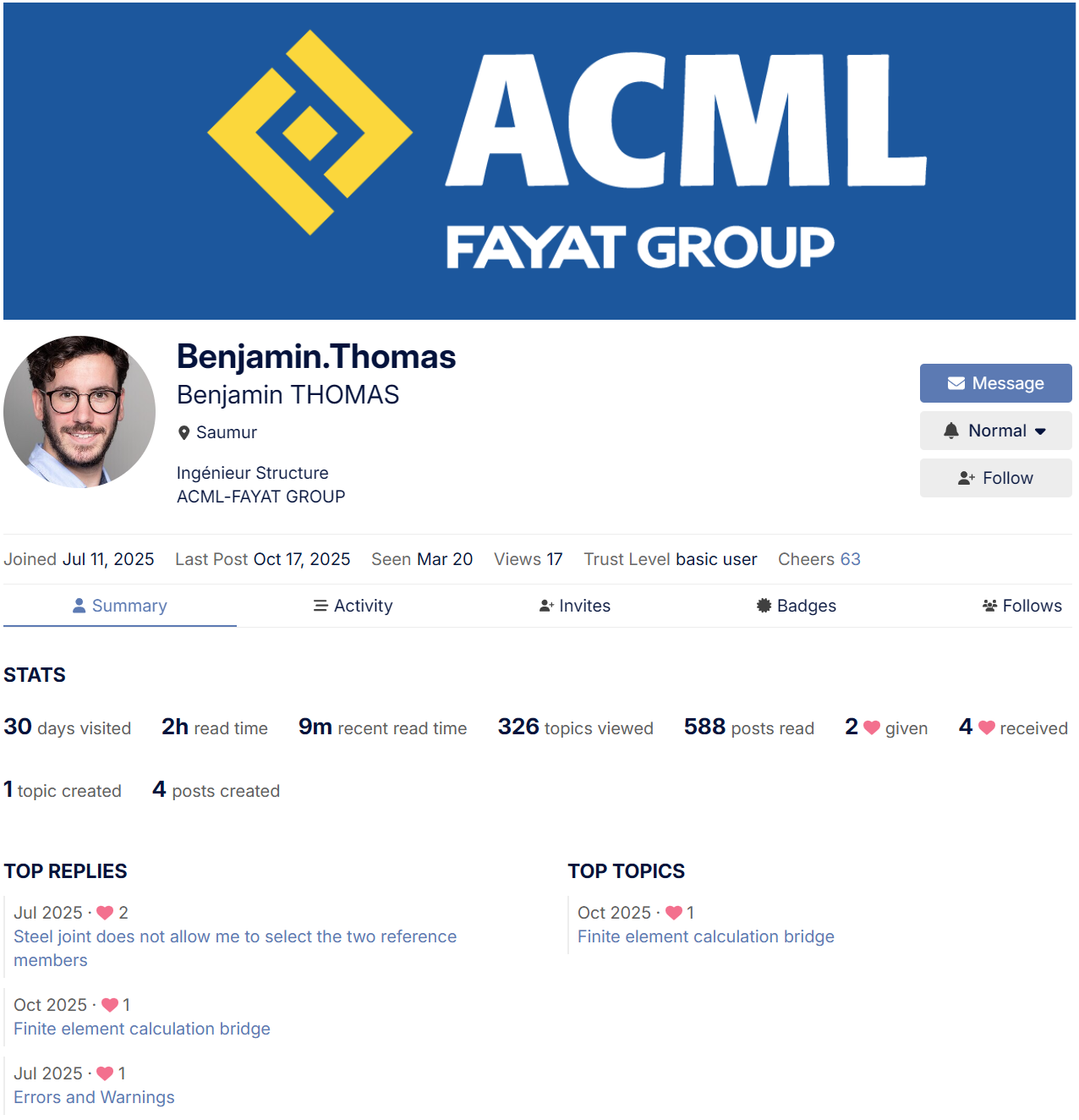 accessible from User Card, Member Board, or by linking to a user's profile