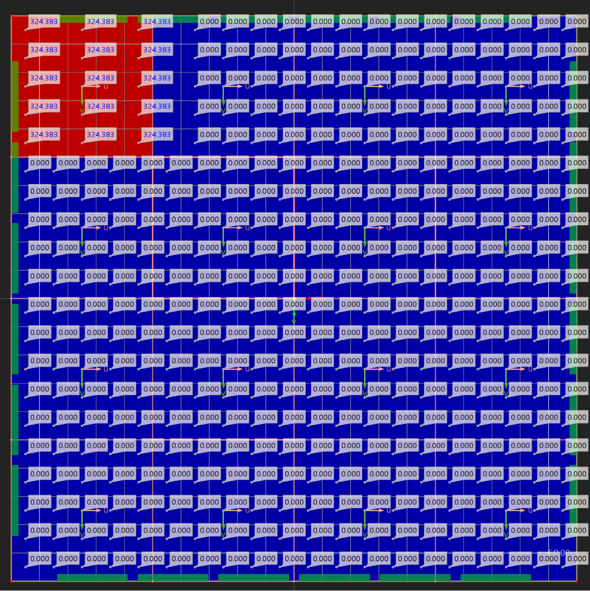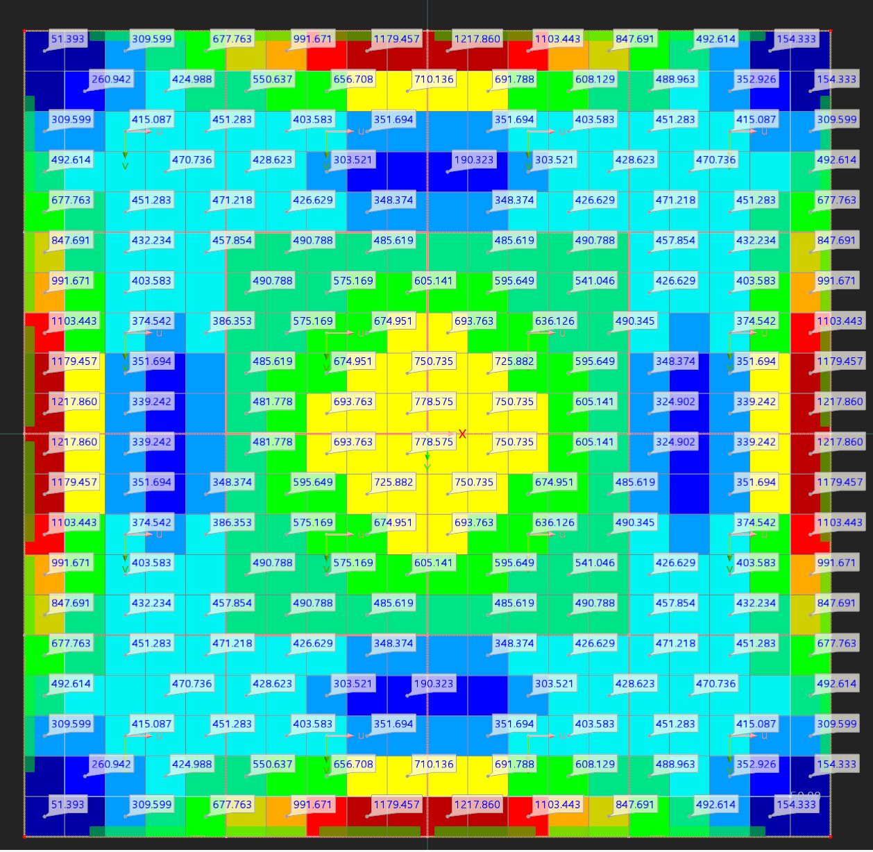 Hi, thank you for reaching out. For the sake of simplicity, I created a very simple model (see attached). It’s a 2 m × 2 m square with a 0.5 m × 0.5 m grid using “Surface Results Adjustment”: