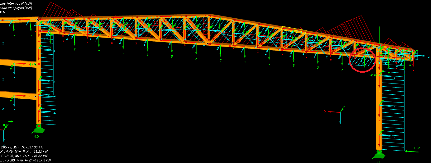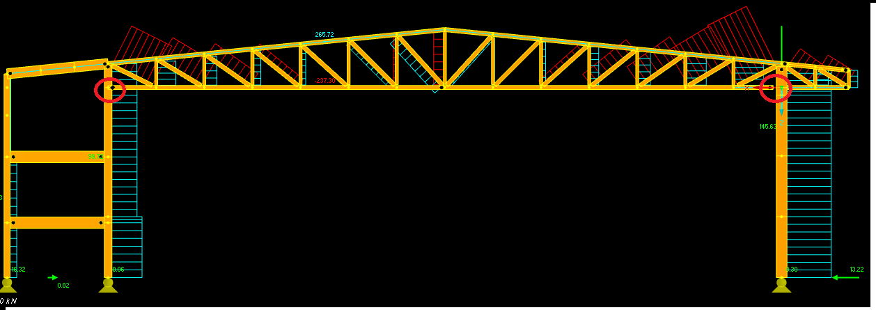 I have a question regarding the sizing of a 3D model in RFEM5. My question is about how to assign the hinges between the bottom chord of the truss and the columns of the frame. They are marked with a red circle in image 1 that I attached.