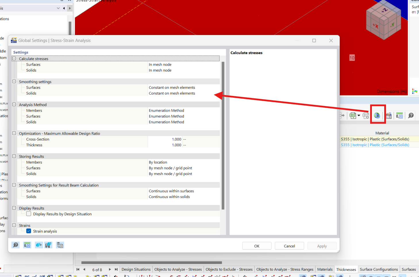 Here you can define in the global addon settings which result smoothing settings should be used for the addon, which I set to "constant in mesh elements" according to the nonlinear material: