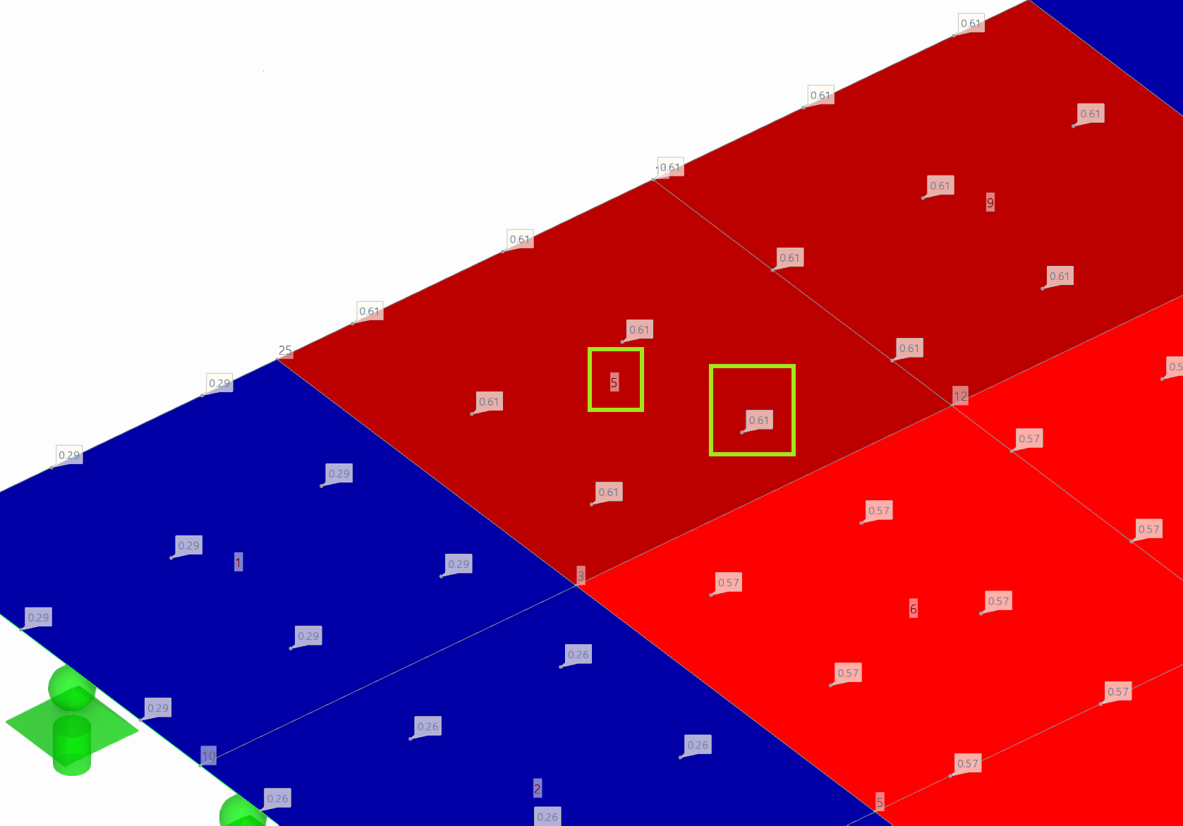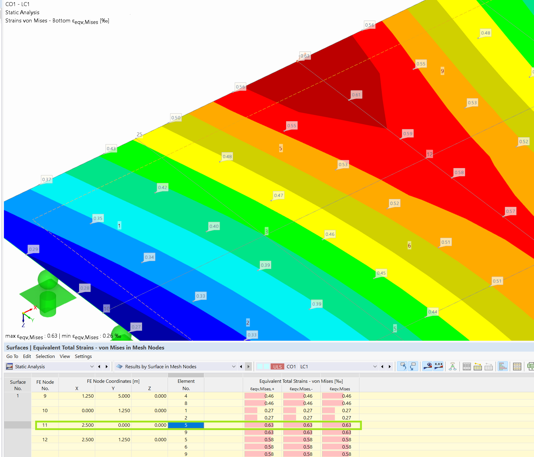 For element 5 in load combination 1, at the bottom layer, I would need a comparison strain according to Mises of 0.000626 (0.626 per mille).