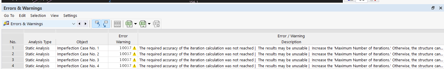 Consideré las Imperfecciones Globales con la opcion "Initial Swap Via Table". Sin embargo, cuando analizo el edificio, me sale los siguientes resultados: