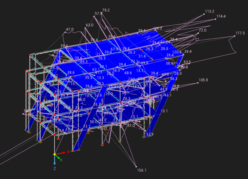Es posible modelar el edificio con las consideraciones que introduje en el modelo? Es posible combinar la option con "Initial Swap Via Table" con exccentricidades de vigas o columnas (Members) y Superficies (Surfaces). O a que se debe el inconveniente que tengo con la visualizacion de los desplazamientos incongruentes?