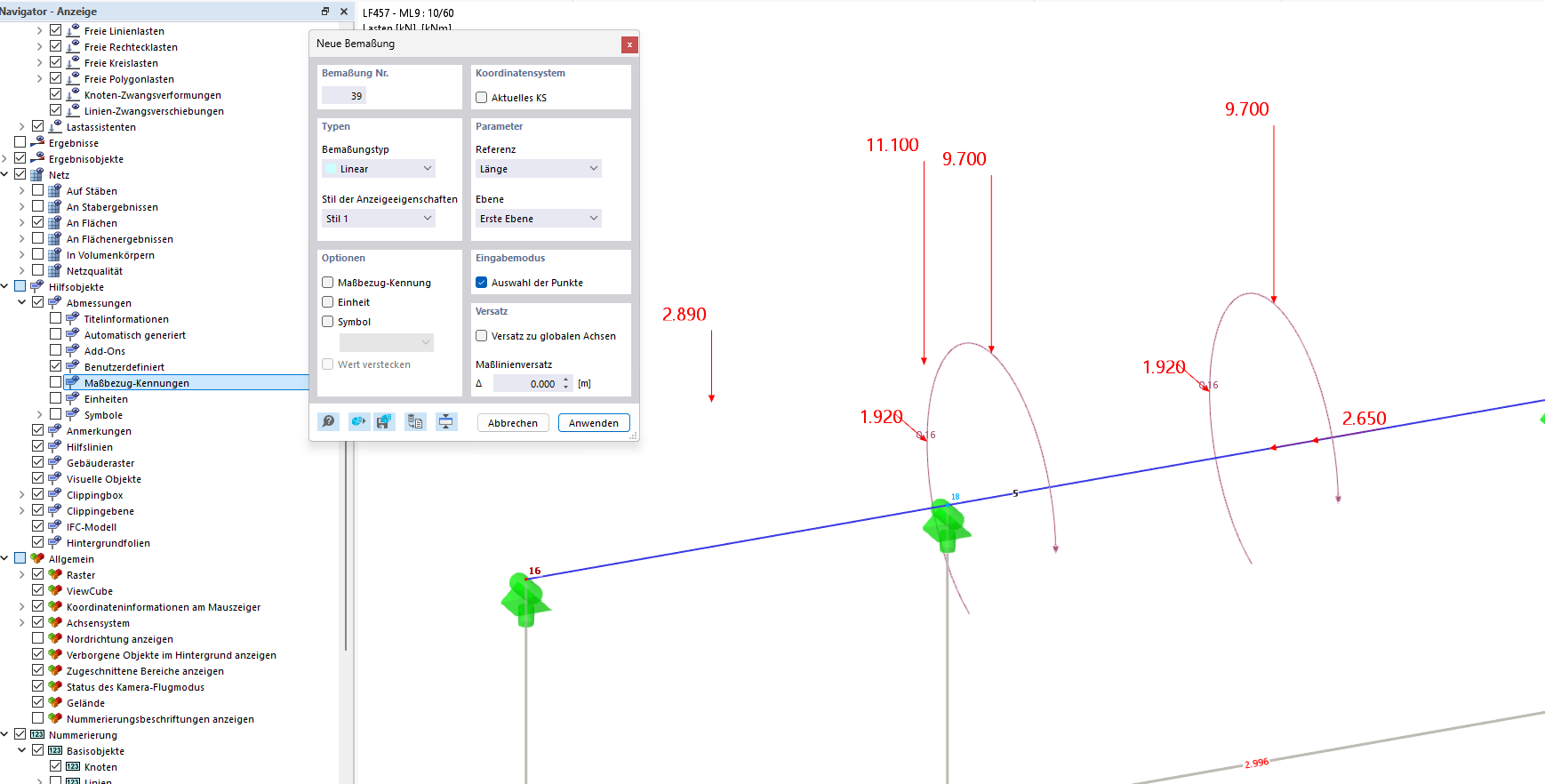 Here, all the displayed loads come from a load model "Operation"; the distances are listed in tabular form in the protocol, but an additional graphical output is also required and I currently cannot provide this using RFEM6 without additional processing using PDF-exchange, etc.