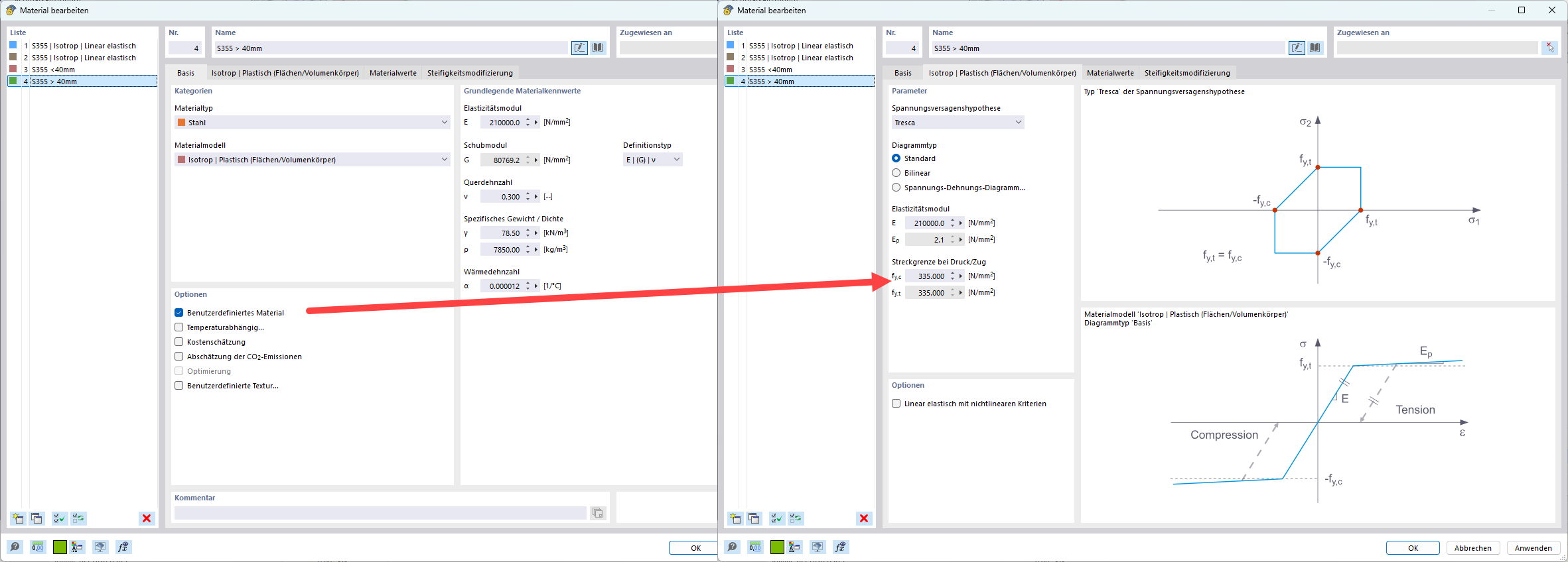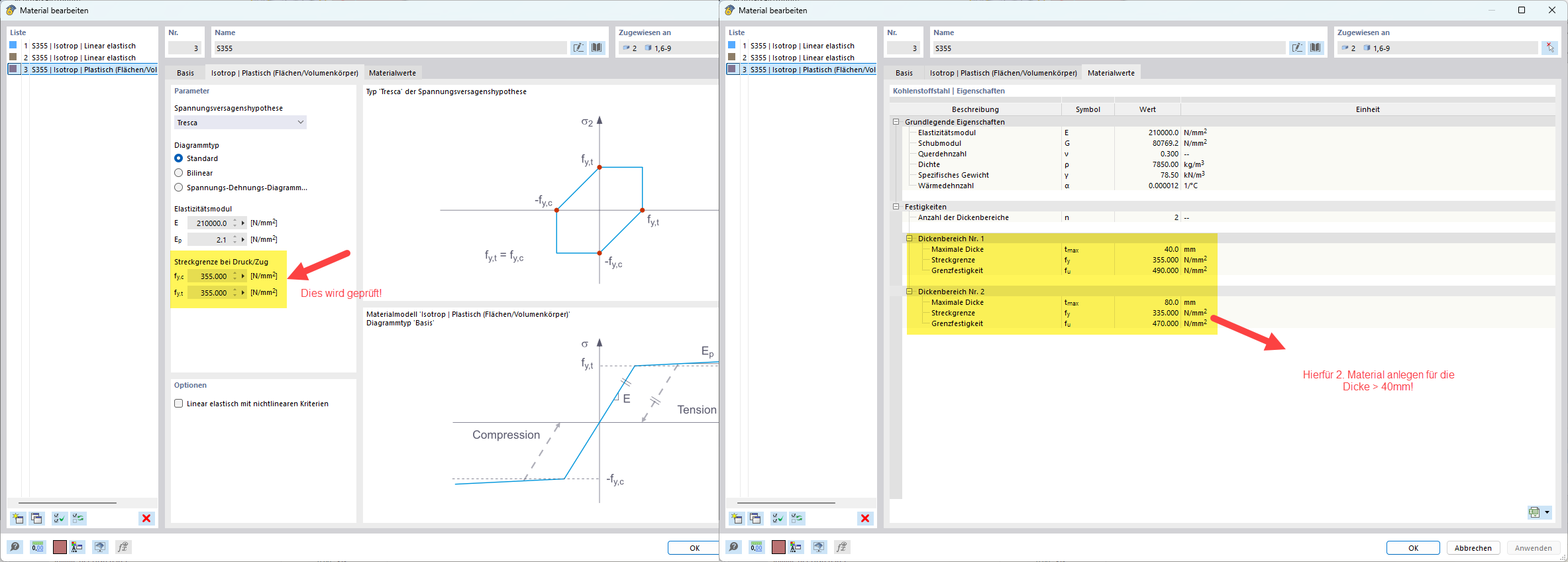 Please also note that the material thickness ranges in plastic materials cannot be automatically checked. For thickness \u003e 40mm, you would need to create a 2nd plastic material so that it can also take the reduced yield strength into account: