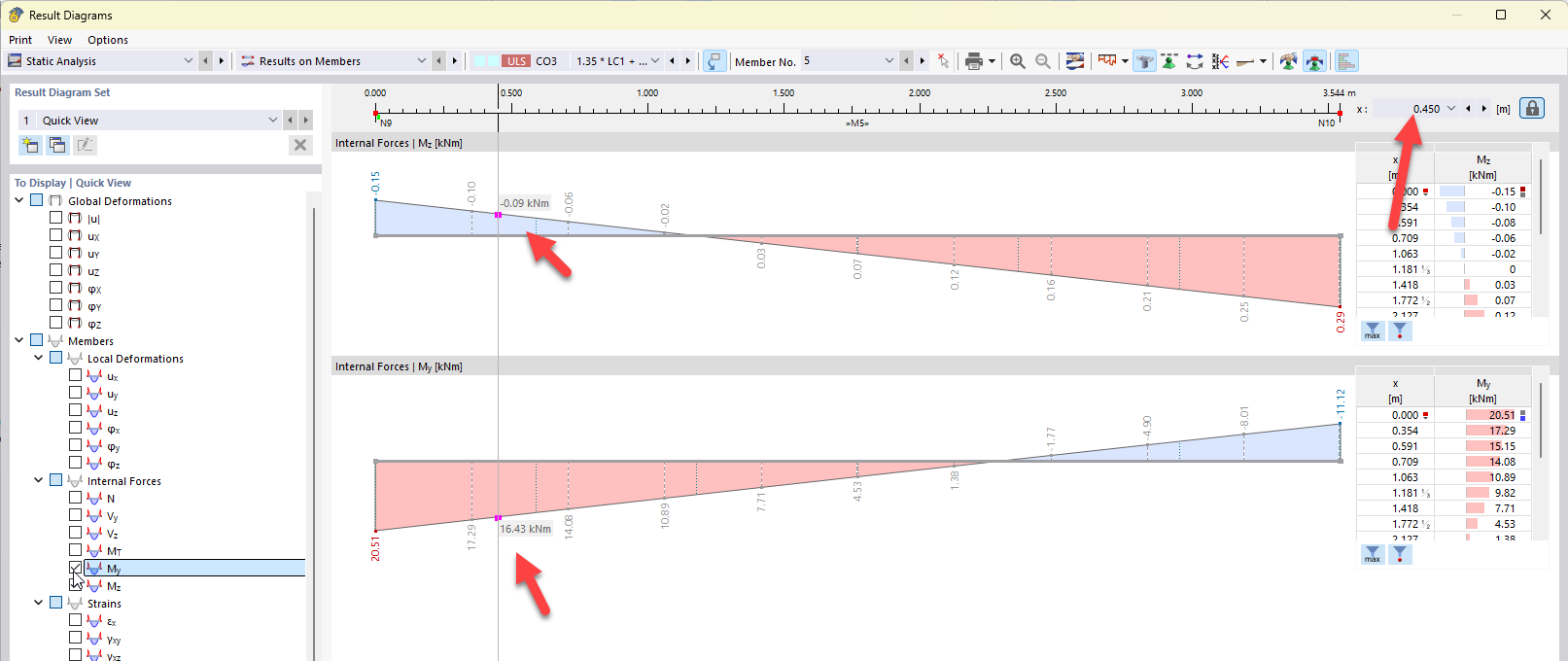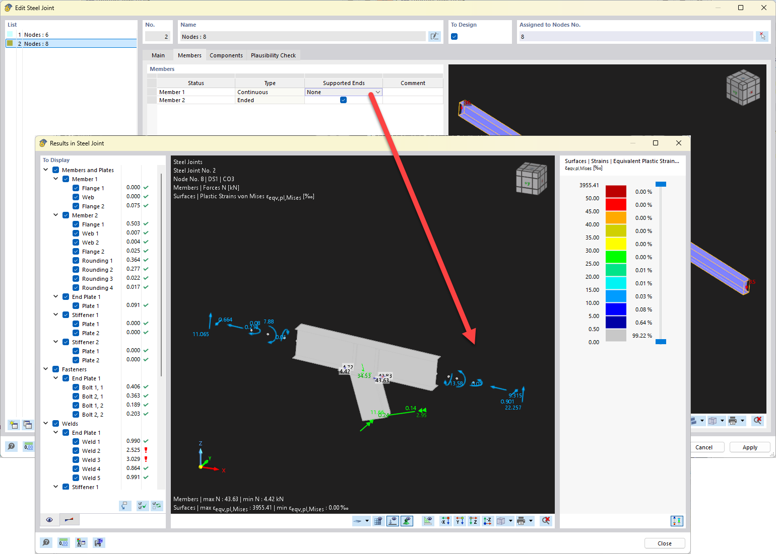 I just want to check something: I have done another analysis for another joint and I checked the values with the ones obtained on the member ends.