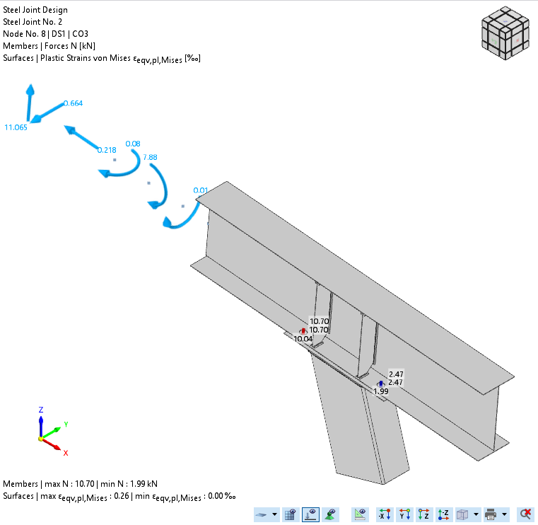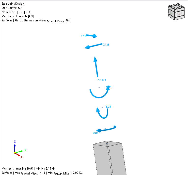 In the "Results in Steel Joint" tab the forces used to calculate the strength of the joint appear on the side and I want to check if they are correct (see image bellow).