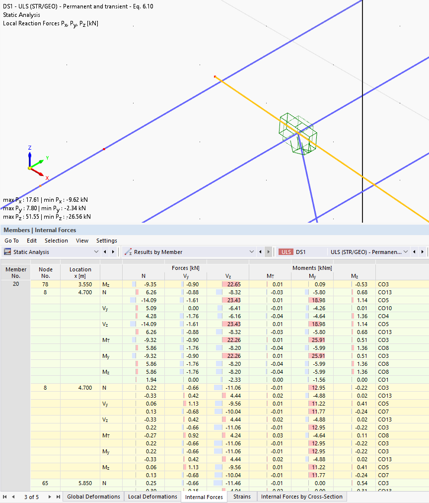 But I can´t seem to find the values of the internal forces for that node and the values I can see are presented member by member (see image bellow).