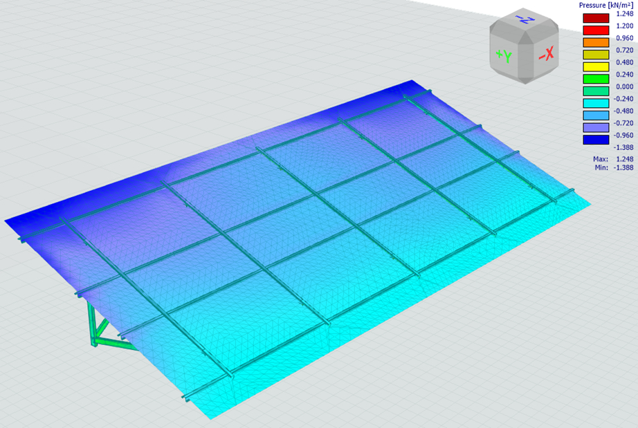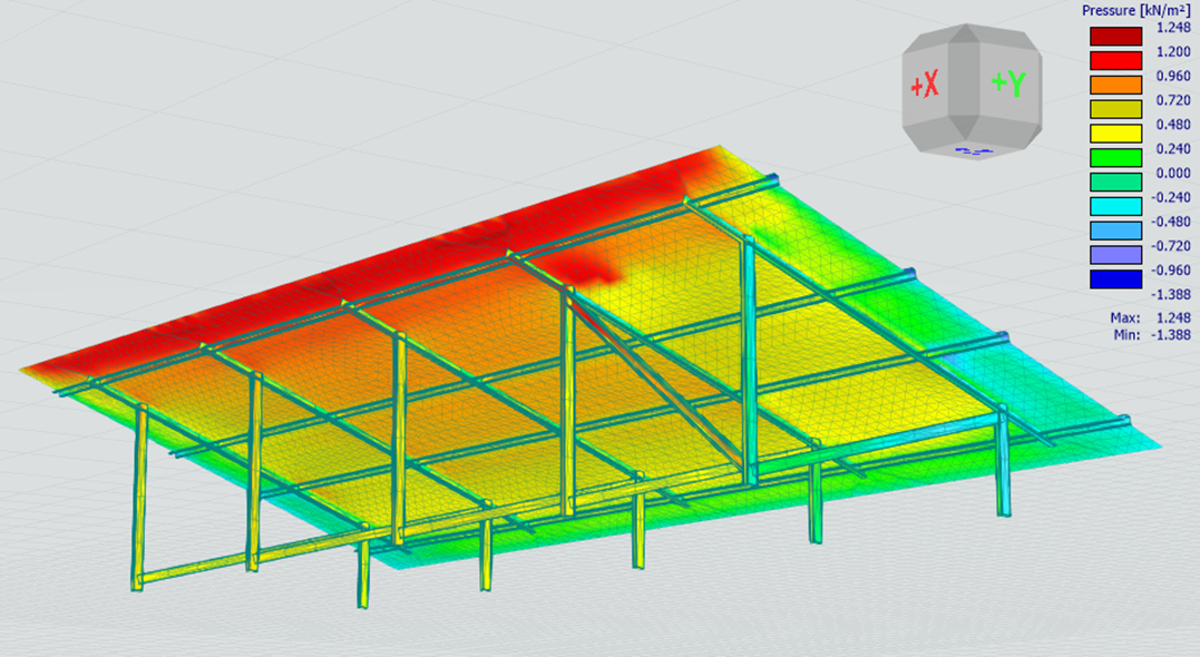 RFEM 6 does not modify or scale the wind pressures imported from RWIND. The pressures are transferred as externally defined surface loads.