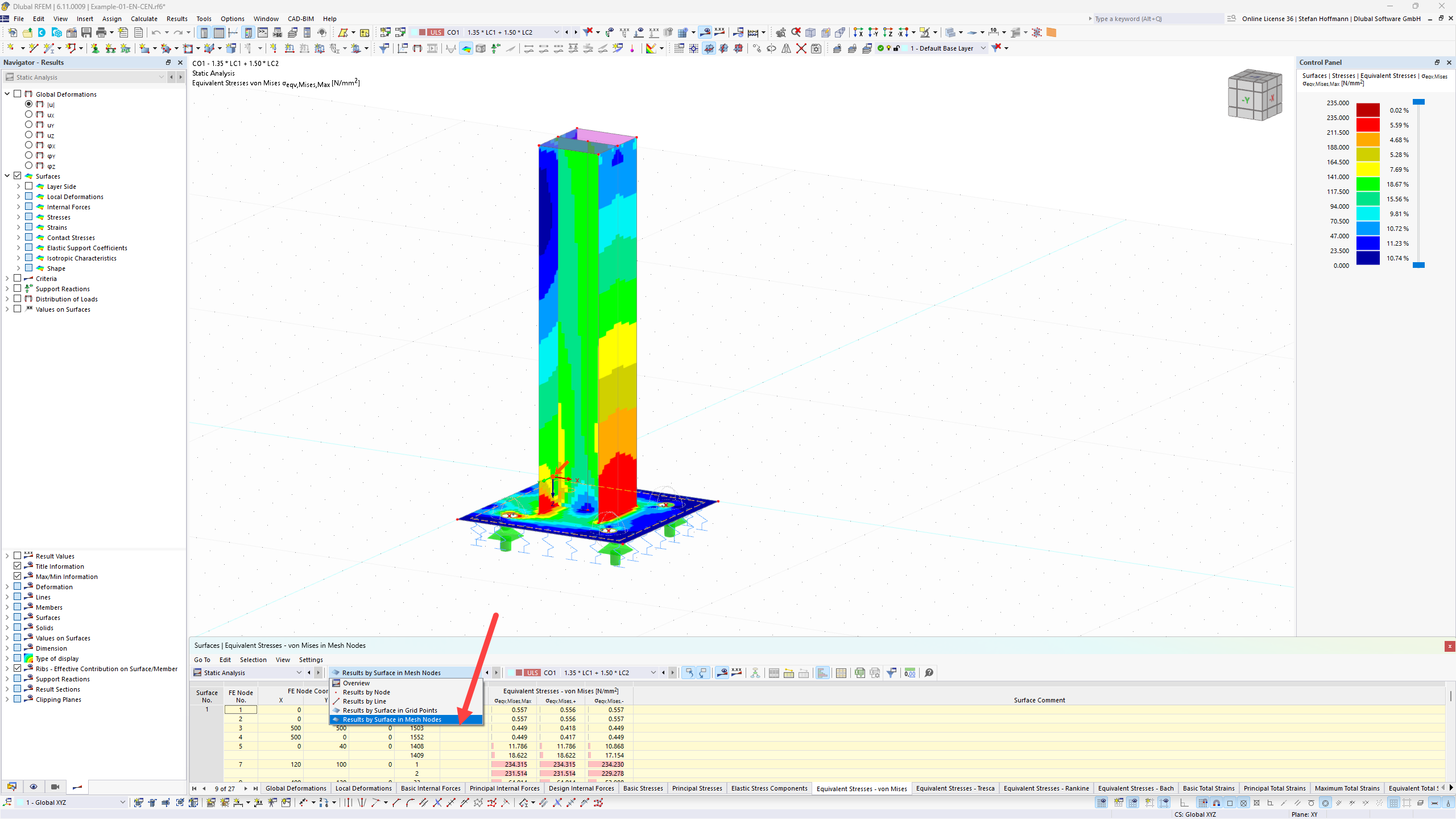 A basic question on my side but I am rather struggling to find a solution. I have a shell model of a steel element. After calculating, I want to export the surface stresses into a csv file. However, I noticed that the stress values on the table are much lower than the ones displayed on the model. And then I realized that the table is built upon the "grid points" of a surface. Now, to change reduce the grid size on the surfaces would result in tens of thousands of result points that are making everything heavier (and still not catching the max/min) stress valued displayed in the model. Is there a way to do this easier? Is there a way to configure the table so that it displays the maximum and minimum stress in the element without needing to "tell it" in which coordinate he must find this?