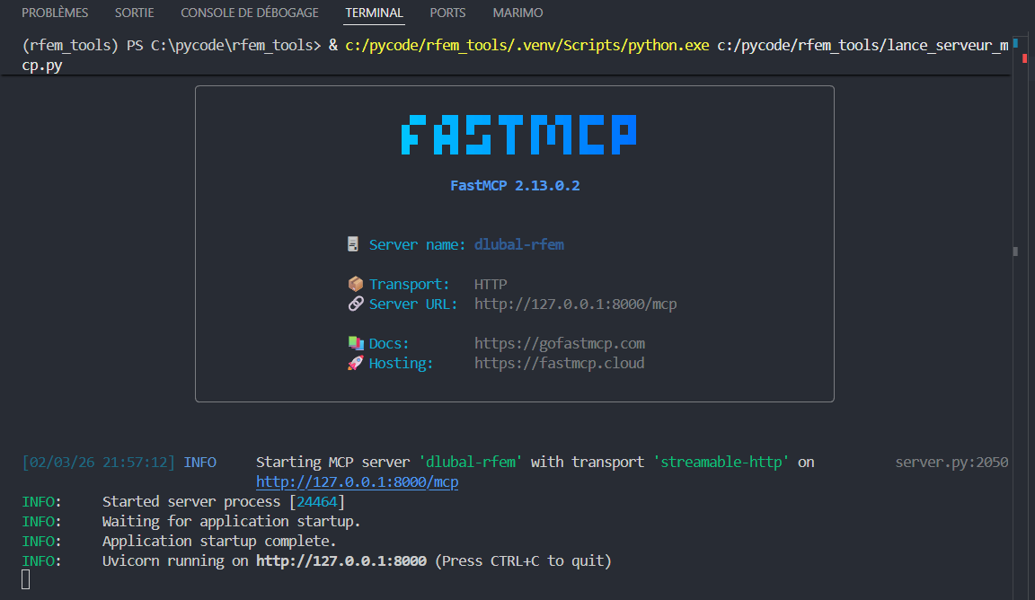File "C:\Program Files\Dlubal\RFEM 6.13\bin\Lib\site-packages\rfem_mcp_server\config.py", line 82, in <module>