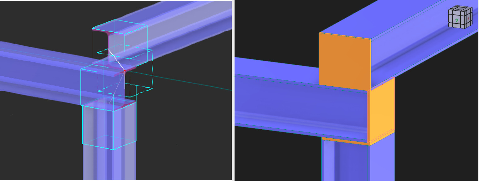 Is there a way to have all three members interact at a single node and be designed together, rather than requiring two separate connections? Right now, I am modeling two separate steel joint connections, which don't allow them to interact with eachother.