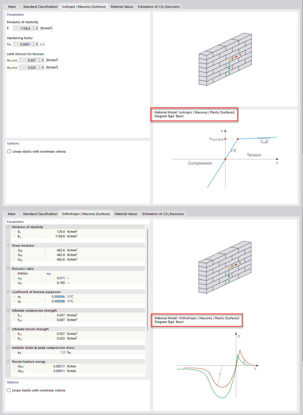 -The individual masonry stones are drawn as 2D surfaces and defined as linear-elastic.
