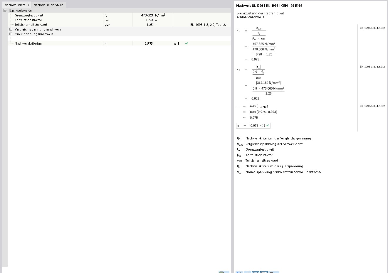 Wenn ich Schweißnähte bzw. Kehlnähte nachweise, fällt mir häufig auf, dass die Auslastung oft bei etwa 96–98 % liegt. Wie im Foto z.B. unten.