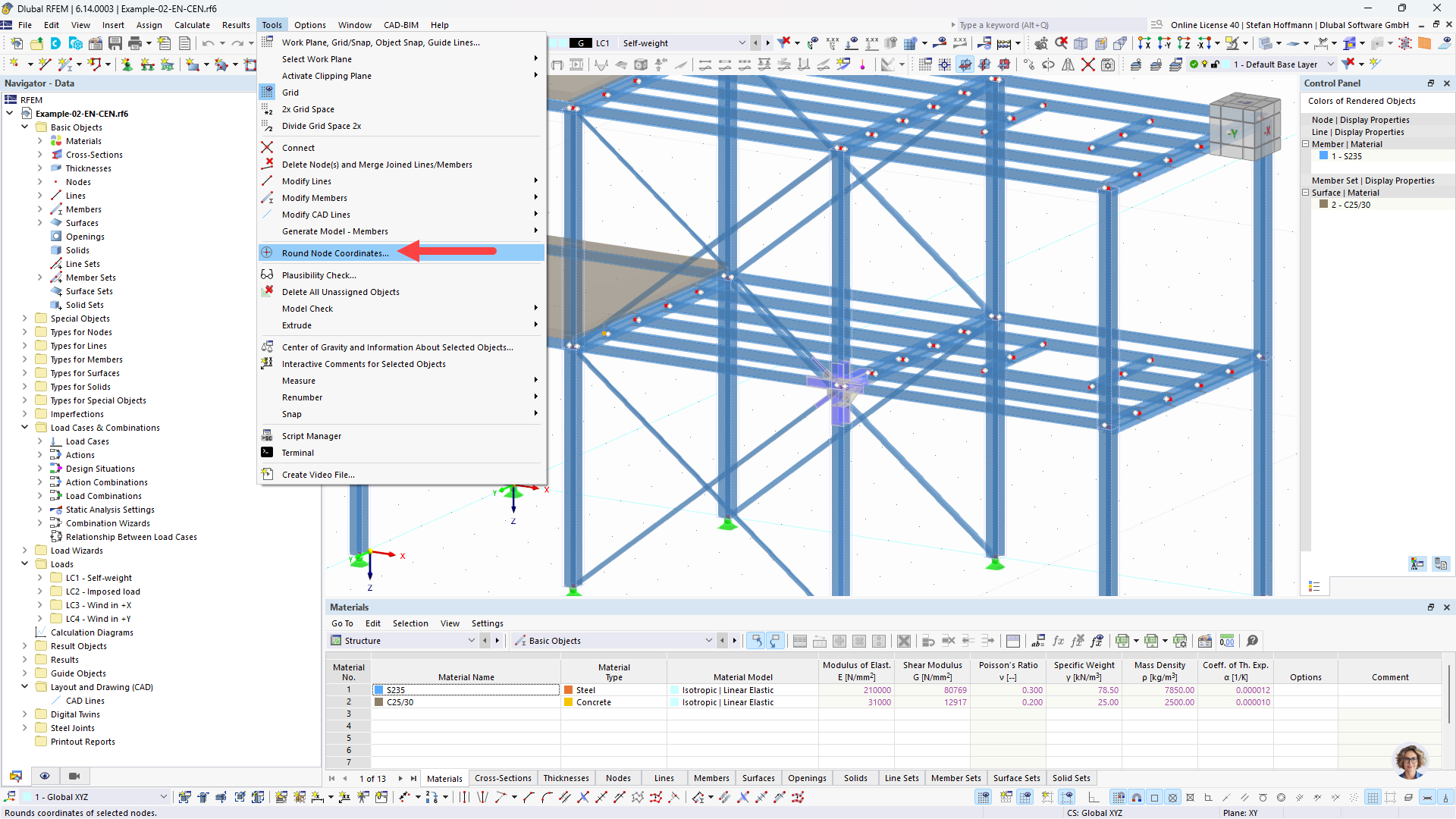My main concern is intersection of non-orthogonal lines. To how many decimal places can I round the intersection point coordinates without changing the actual line geometry or causing connectivity problems in RFEM 6? In short to avoid getting the orange line.