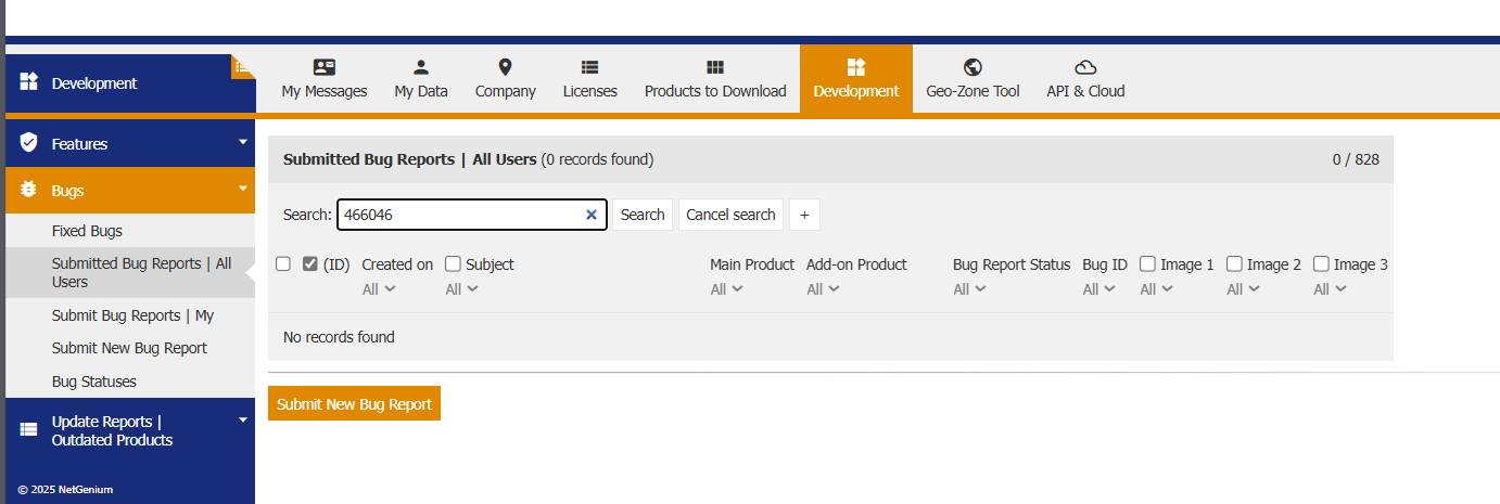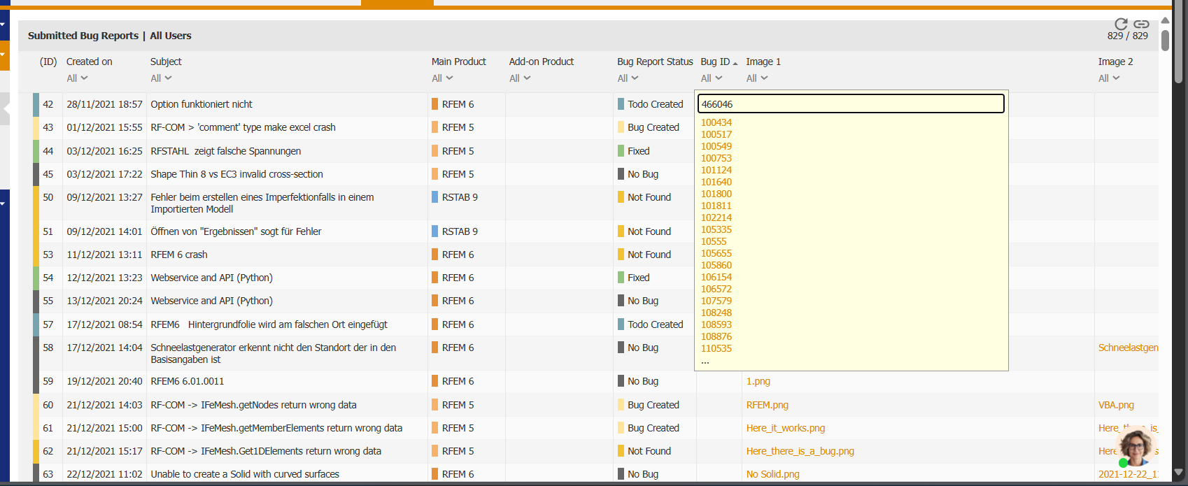 You have to select Fixed Bugs instead of Submitted Bug Reports on the left side. This is due to the fact that this bug was not submitted by a customer but documented by us at Dlubal Software.
