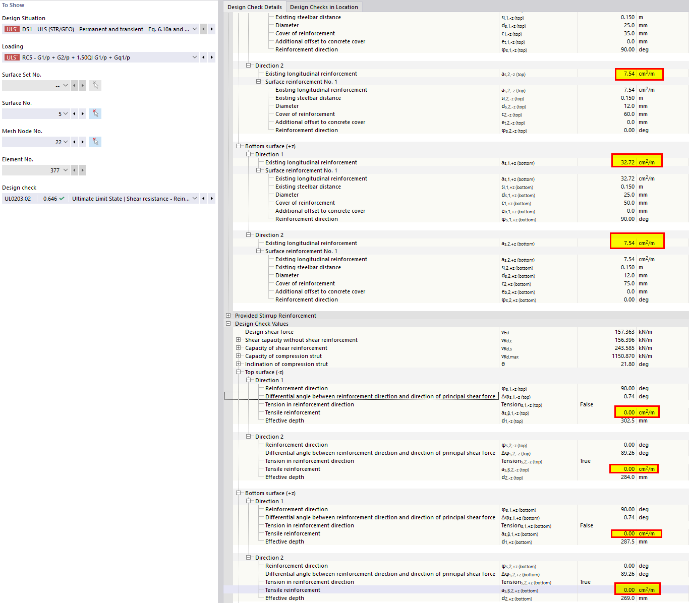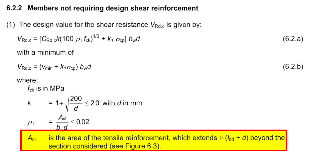 I’m running into an issue with the shear resistance check according to EN 1992-1-1 (formula 6.2.a). In some locations the software sets the tensile reinforcement area Asl to zero, even though the reinforcement is clearly present.