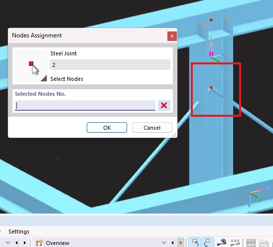 I was trying to add a steel joint and first it didn't allow me to click and add the node. Then I manually typed the node number.