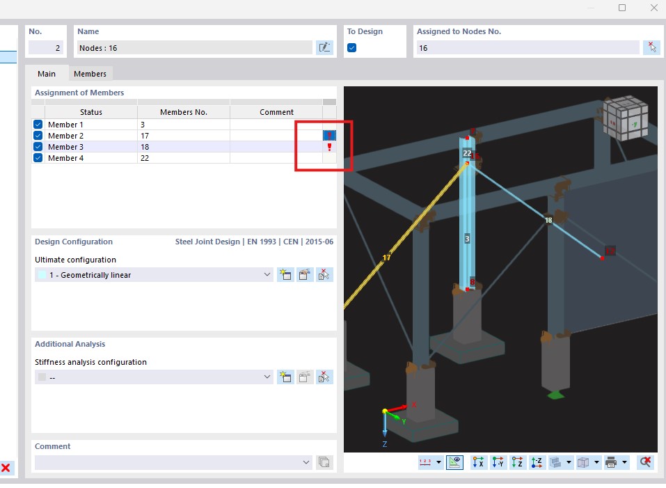 The general modeling of joints is based on surface elements. This is suitable for thin-walled sections and saves a lot of computational resources. The downside of this approach is that it does not apply to massive cross-sections without further ado. That's why those braces are excluded from the steel-joint design in the current state of RFEM 6.