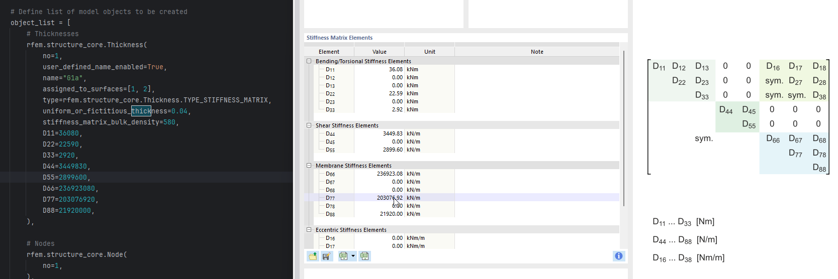 I want to define a thickness via a stiffness matrix using Python & API-2, but I am not really sure how the function is structured or how the arguments work.