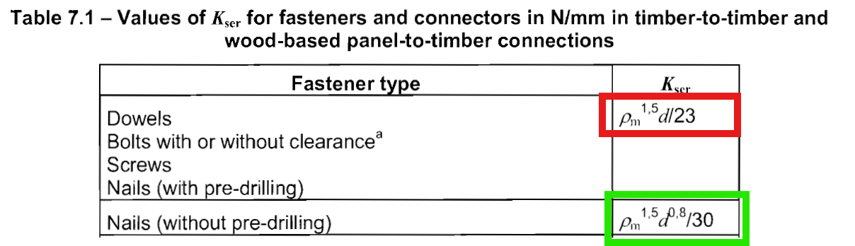 - Whether EC5 Table 7.1 can be used to derive equivalent spring stiffness values, or if another methodology is more suitable.