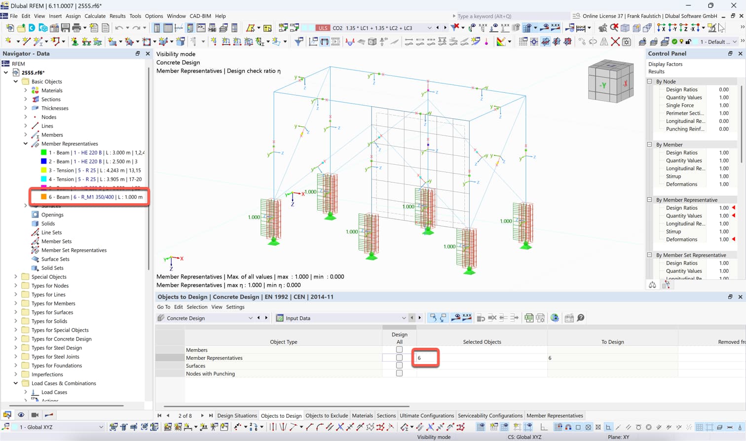 I selected member representatives 6. This combines all members for which concrete design is appropriate. The other members are all steel members.