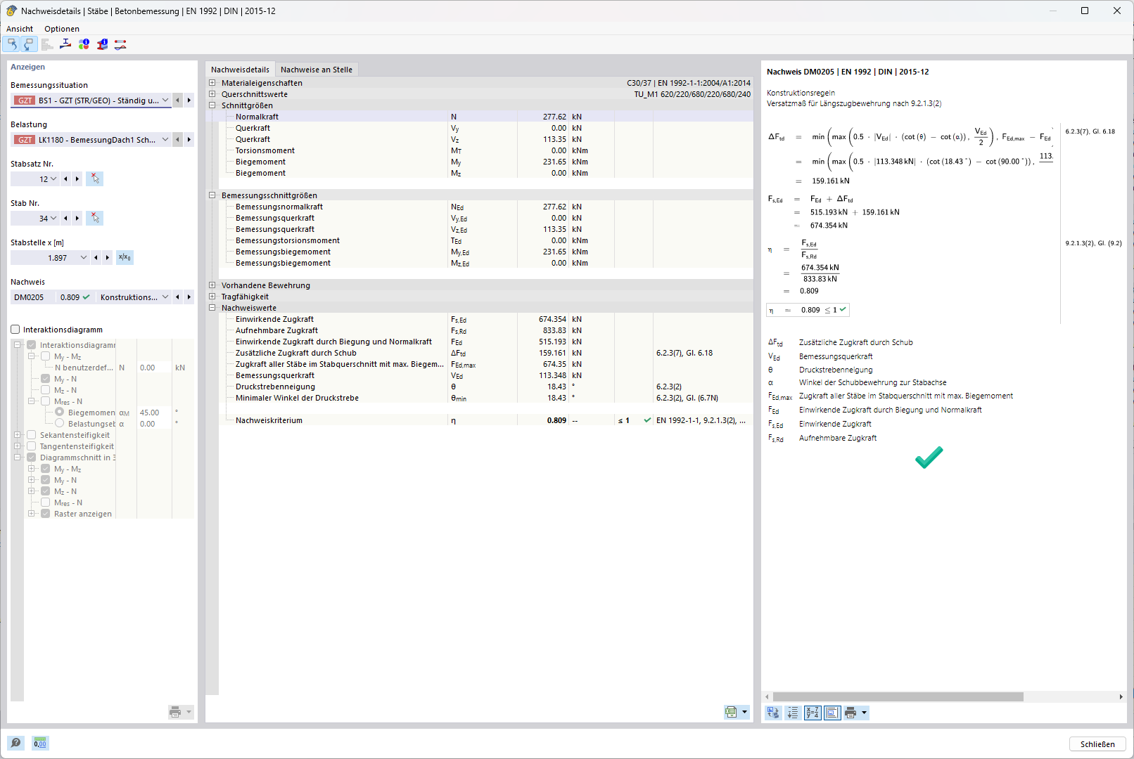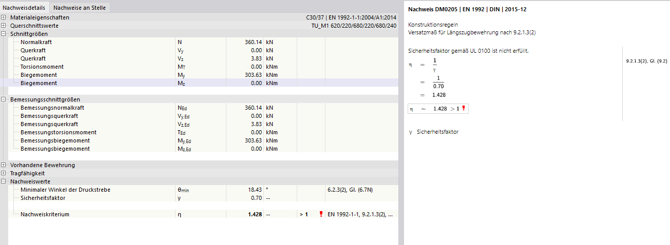 Bei einer Überbeanspruchung des Querschnitts (d.h. wenn UL 0100 > 1) ist eine Berechnung der Stahlspannungen nicht mehr möglich. Diese Spannungen sind jedoch die Grundlage für den konstruktiven Nachweis DM 0205.