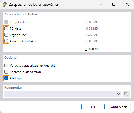 Klicke auf Datei → Speichern unter und wähle folgende Einstellungen, um die Dateigröße zu reduzieren: